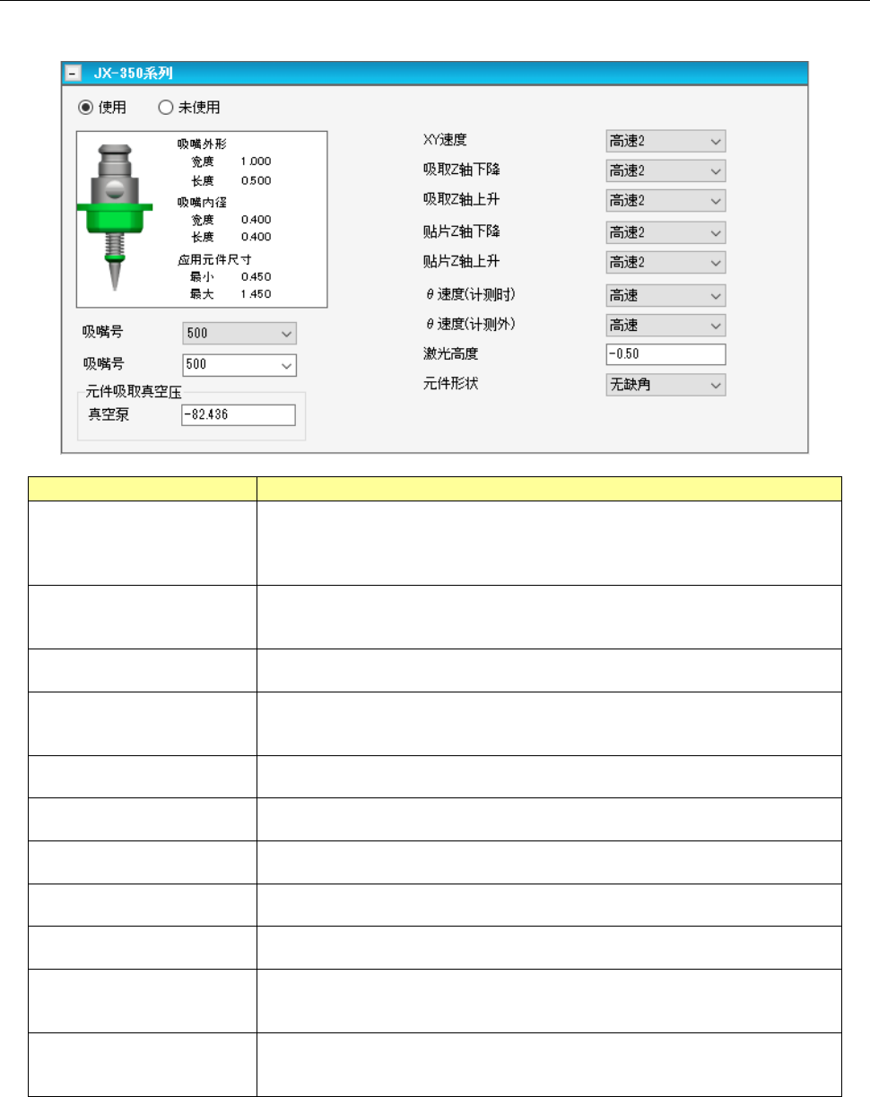 根据选择内容吸嘴号码范围组合框的内容会变化。