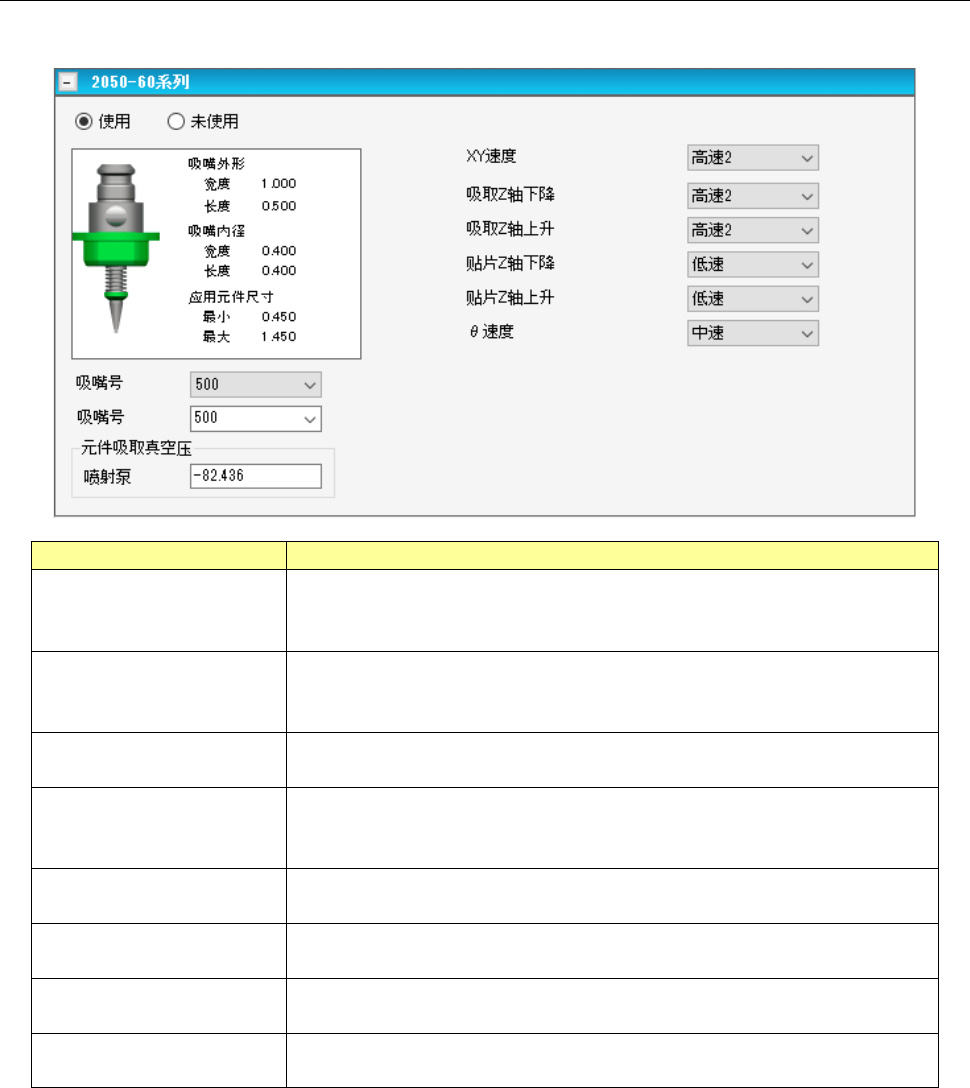 根据选择内容吸嘴号码范围组合框的内容会变化。