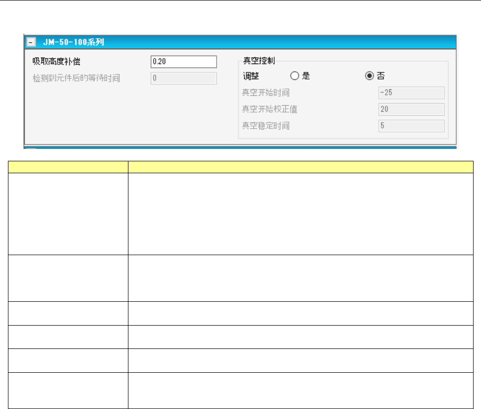 吸取条件(JM-50-100 系列)画面,可设置 JM-50-100 系列固有数据。
