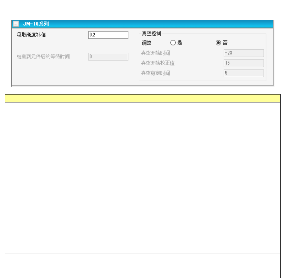 段控制选择「是」时,可输入此项,输入吸嘴下降时的转换高度。