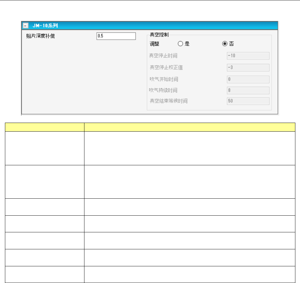 贴片条件(JM-10 系列)画面,可设置 JM-10 系列固有的有关数据。