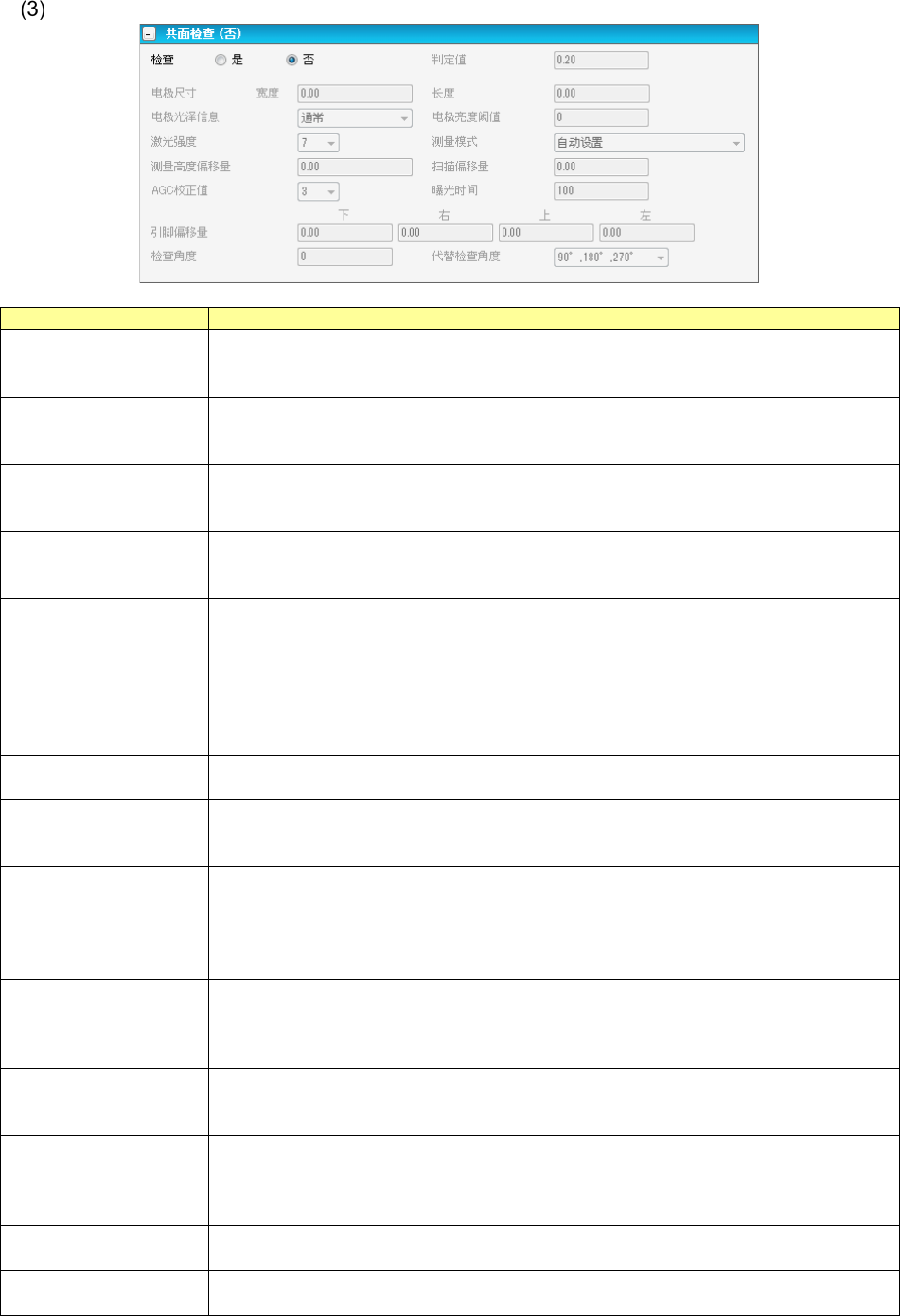 指定共面检查中选择「是」时,此项变为可输入状态。输入电极亮度阈值。