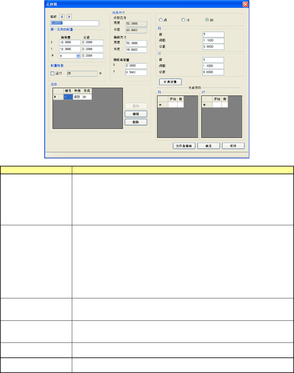 在元件组画面中,可对元件组逐一进行元件位置、元件数、间距等详细设置。