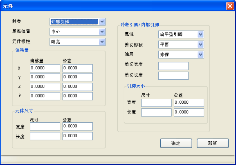 6- 87 6) 元件(引脚时) 在元件画面中,可进行元件的种类、配置、尺寸等元件信息的详细设置。 单击元件组画面的「编辑」按钮,或双击元件,即可显示此画面。 选择元件的种类后,可显示下列图案。 外部引脚 / 内部引脚时