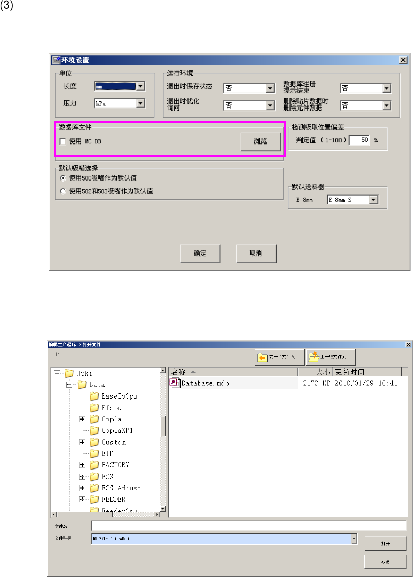 ① 在「编辑程序」→「文件」→「环境设置」中选择要使用的数据库文件。