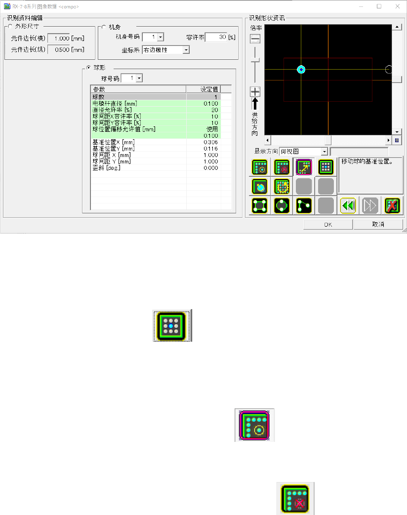 4) 用鼠标单击位于锡球基准位置的蓝色标记。(或在[编辑窗口]的任意位置单击鼠标右键。)