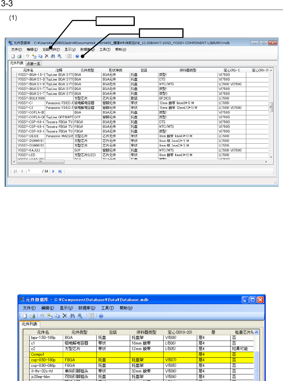 3-4 画面构成 元件列表画面 「元件列表」画面的显示方法,可在菜单的「显示」中,更改为以下画面。 ・ 全部显示 通过选择「显示」-「全部」,可全部显示。显示顺序为数据的注册顺序。 ・ 按元件类型显示 通过选择「显示」-「各元件类型」,可按各元件类型显示。 ・ 按包装显示 通过选择「显示」-「各包装」,可按各包装显示。 在「 元件列表」 画面中, 如果制作的 「元件数据」 处于未完成状态时, 相应元件信息的背景色会显示黄 色。 遇到此种…