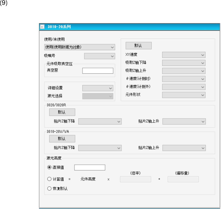 3- 32 替换项目(激光定心)( 3010 - 20 系列) 设置激光定心中要替换的 3010 - 20 系列固有数据。