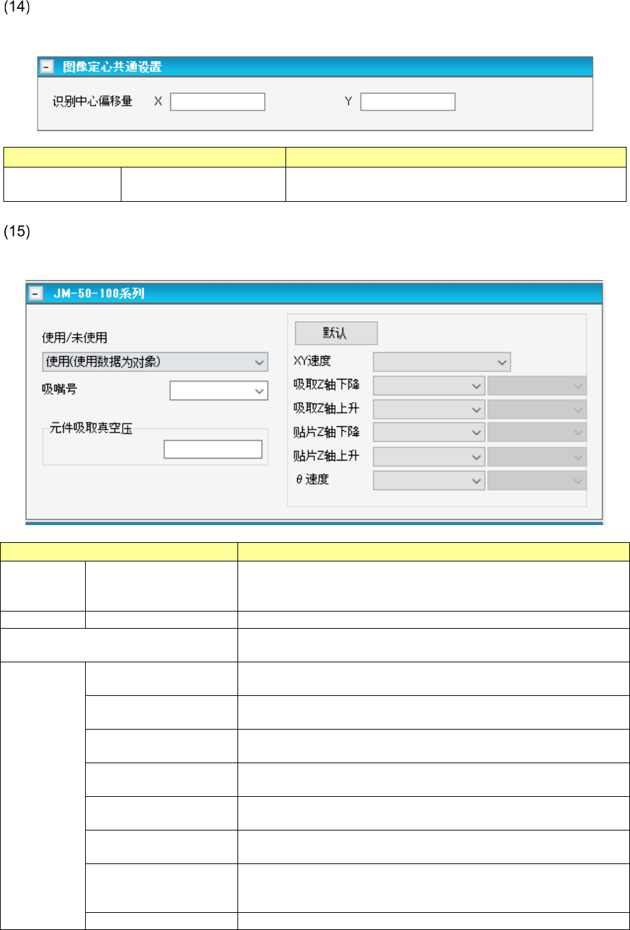 设置图像定心中要替换的 JM-50-100 系列固有数据。