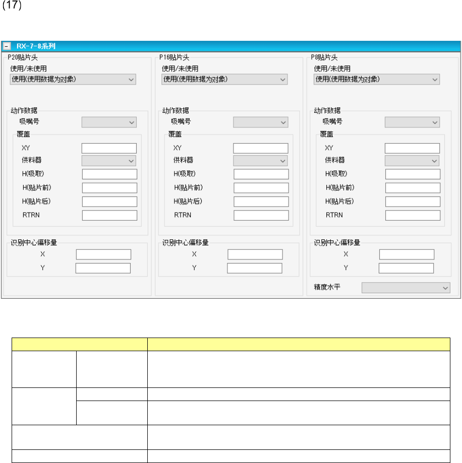 设置图像定心中要替换的 RX-7-8 系列固有数据。