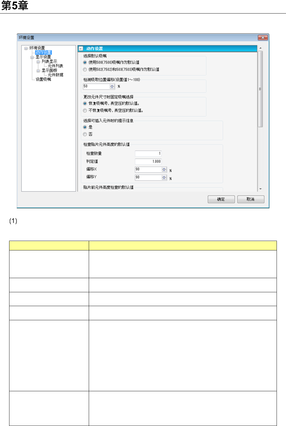 输入用于计算检测吸取位置偏移的判定值设置值。