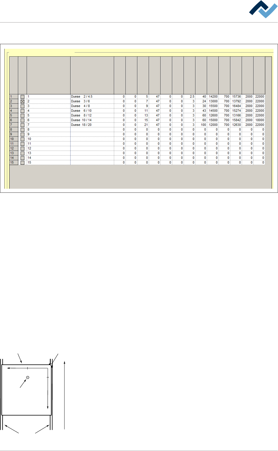 – [X [mm]] et [Y [mm]]: Ces valeurs servent à déterminer le centre de la buse.