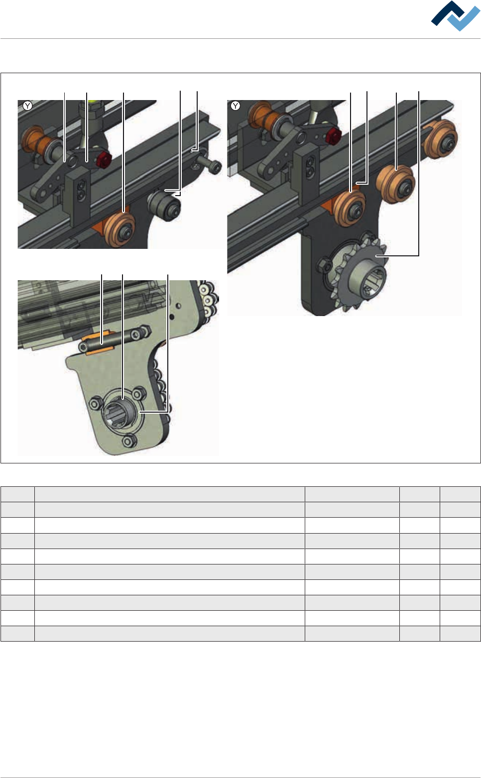 9|Pièces de rechange et d'usure Rail flexible 1, (Single track), vue [Y] 4 5 1 4 4 4 2 3 6 7 9 8 Fig.203: EM113-338-20-00b Pos Appellation Numéro de référence A B 1 Sliding piece (chain tensioner) 169520 x 2 Dist…
