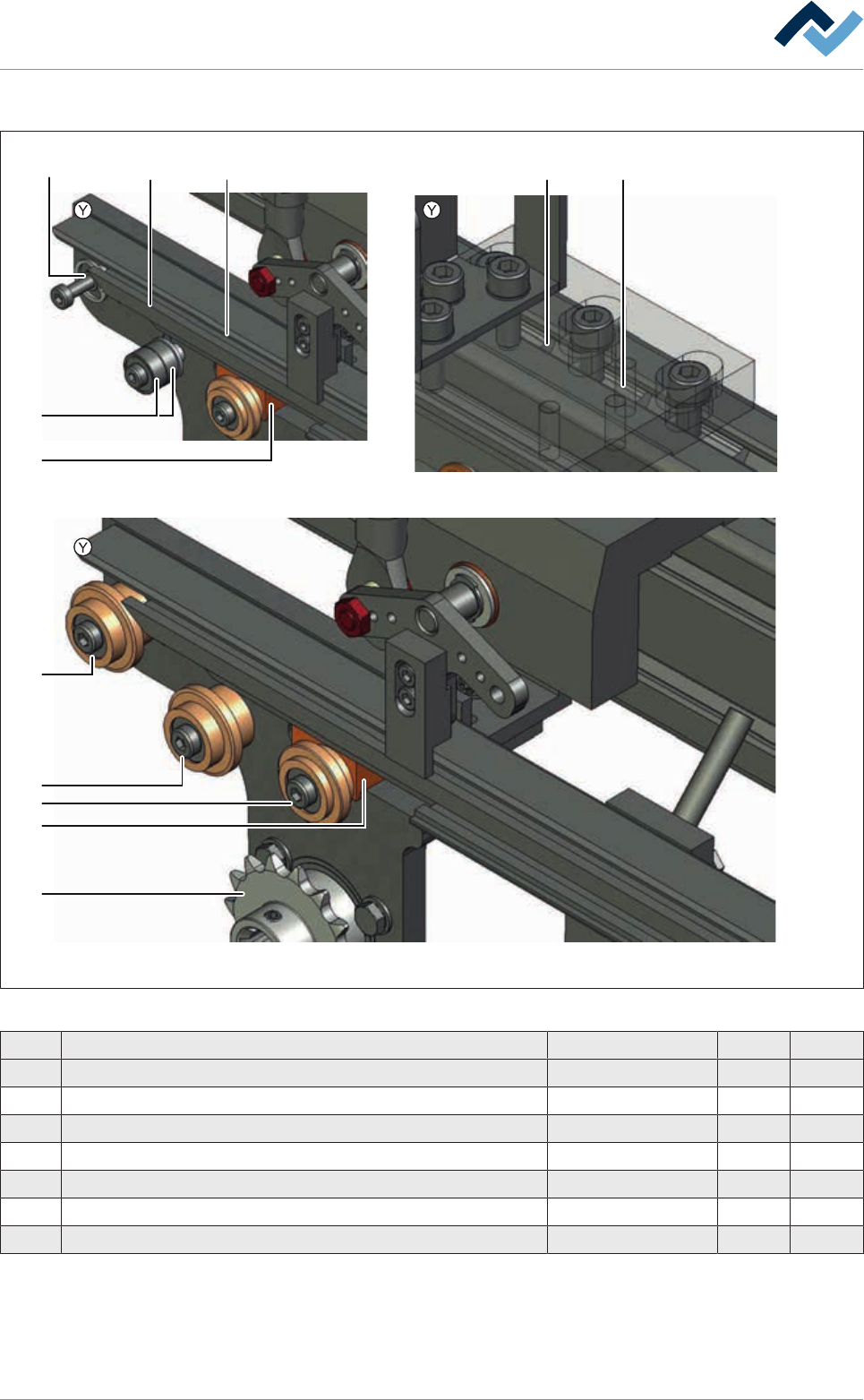 9|Pièces de rechange et d'usure Rail fixe 1, (Single track), vue [Y] 1 1 2 4 2 5 7 3 2 4 6 6 Fig.199: EM113-338-10-00B Pos Appellation Numéro de référence A B 1 Groove nut STM5 6ZIS049 x 2 Sliding piece (chain te…