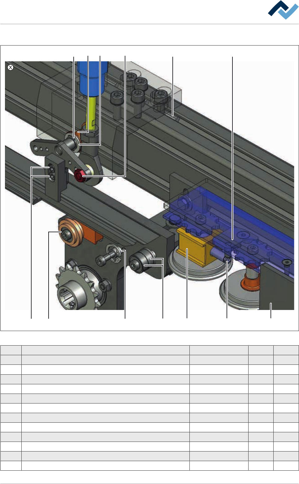 9|Pièces de rechange et d'usure Rail flexible 1, (Single track), vue [X] 1 12 13 3 2 10 5 4 11 6 9 7 8 Fig.236: EM113-339-20-00Ae Pos Appellation Numéro de référence A B 1 Pressure spring VD-177 143511 X 2 Chain …