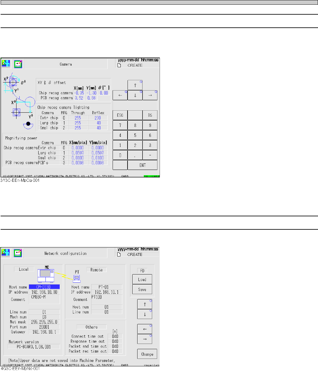 The offset values, lamp values, magnification, etc. of chip recognition camera and board recogni-