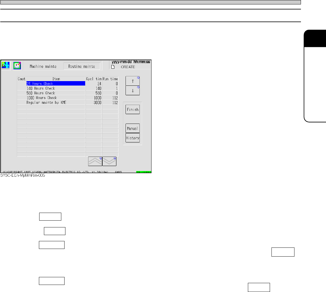 The contents of items selected on each screen of “Routine mainte” and “Consume parts exchange”