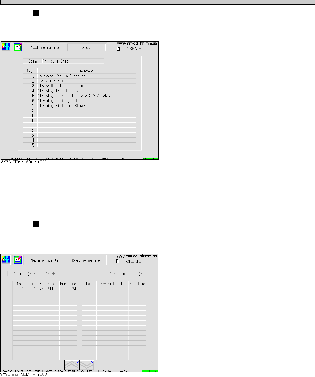 Page 2-21 MACHINE P ARAMETER 2 Machine Maintenance 2-2-1 Routine Maintenance Maintenance operation for CM88 is divided for each period, based on the run time. “Cycle time” for each item and “Run time” spent from the prev…