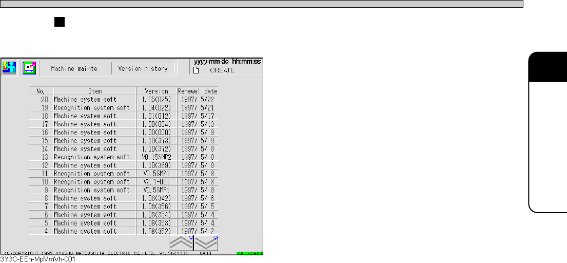 Page 2-25 MA CHINE P ARAMETER 2 Machine Maintenance V ersion history The update history of machine and recognition system software are displayed. Machine or recognition system software is displayed on the blank for item,…