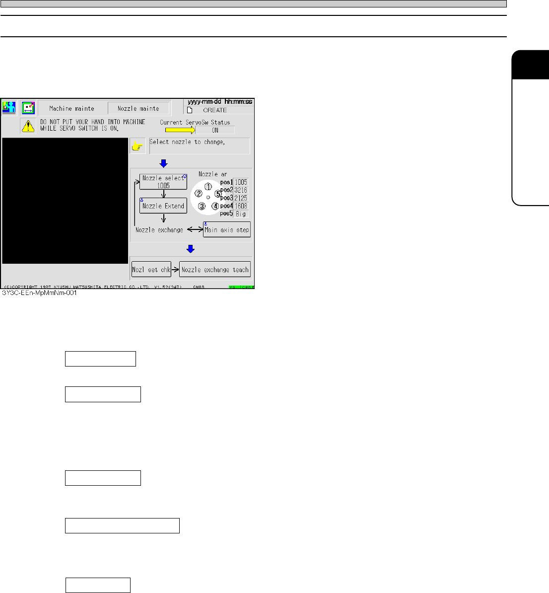 Use this to move the nozzle of next head to the position for removing and setting (station 12, 1,