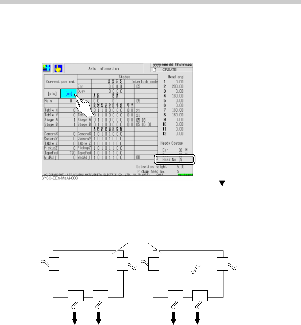 1.Check “Head No. ∗ ∗ ” displayed at the lower right on the “Axis information” screen after “Machine