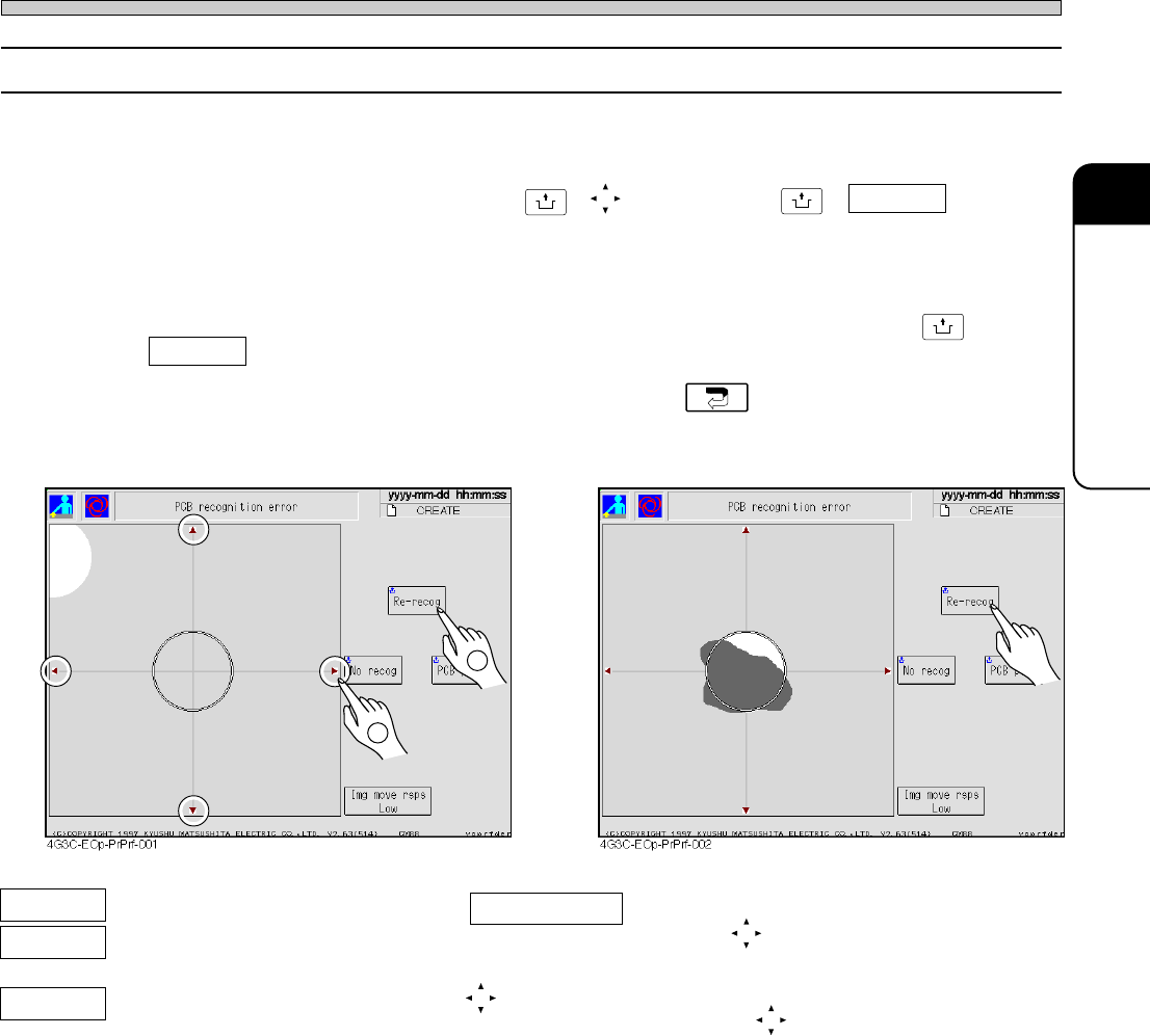 First, check the error screen. If the recognition mark is not at the center of recognition screen,