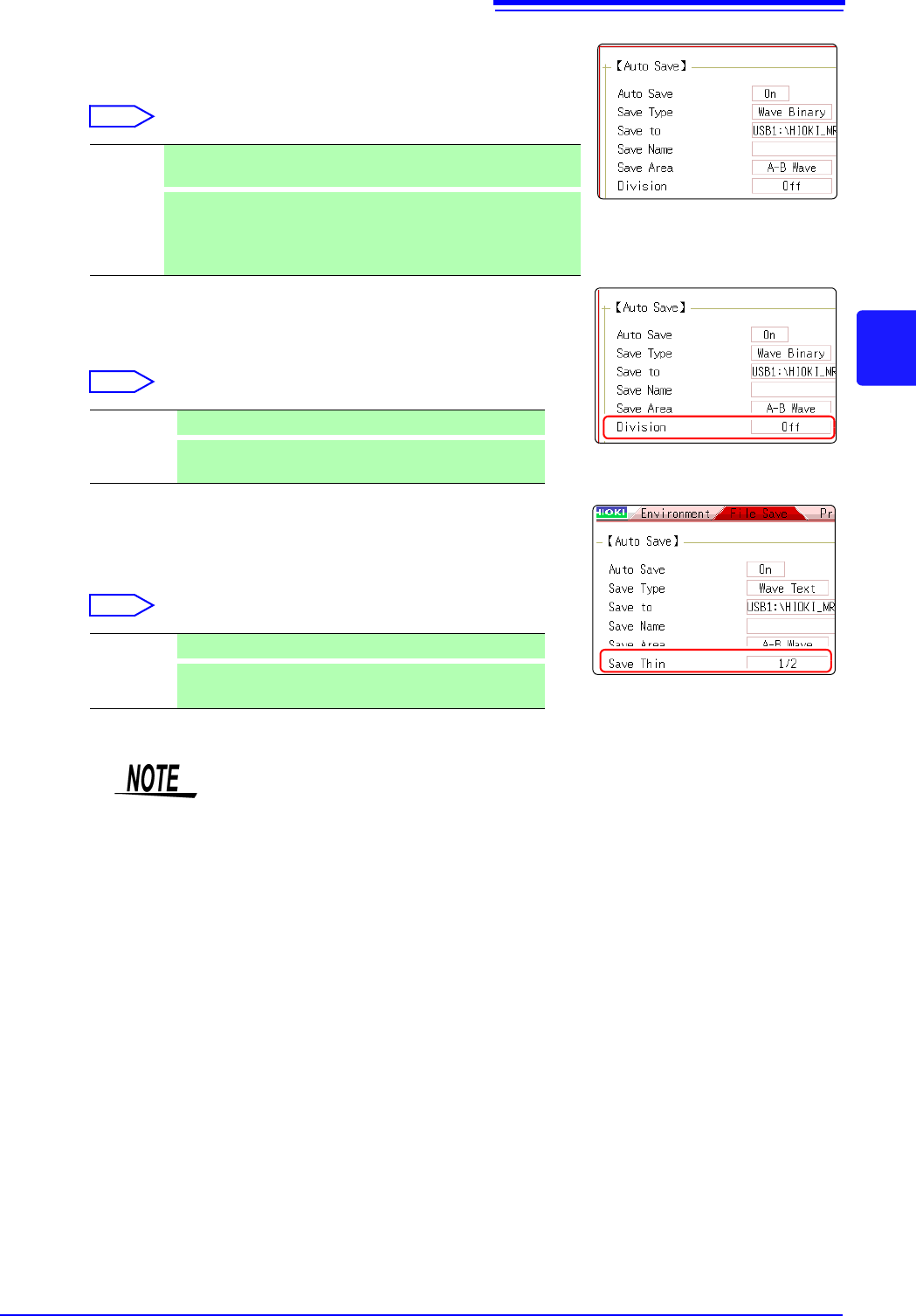 • Large quantities of waveform data can be divided and saved as multiple files.
