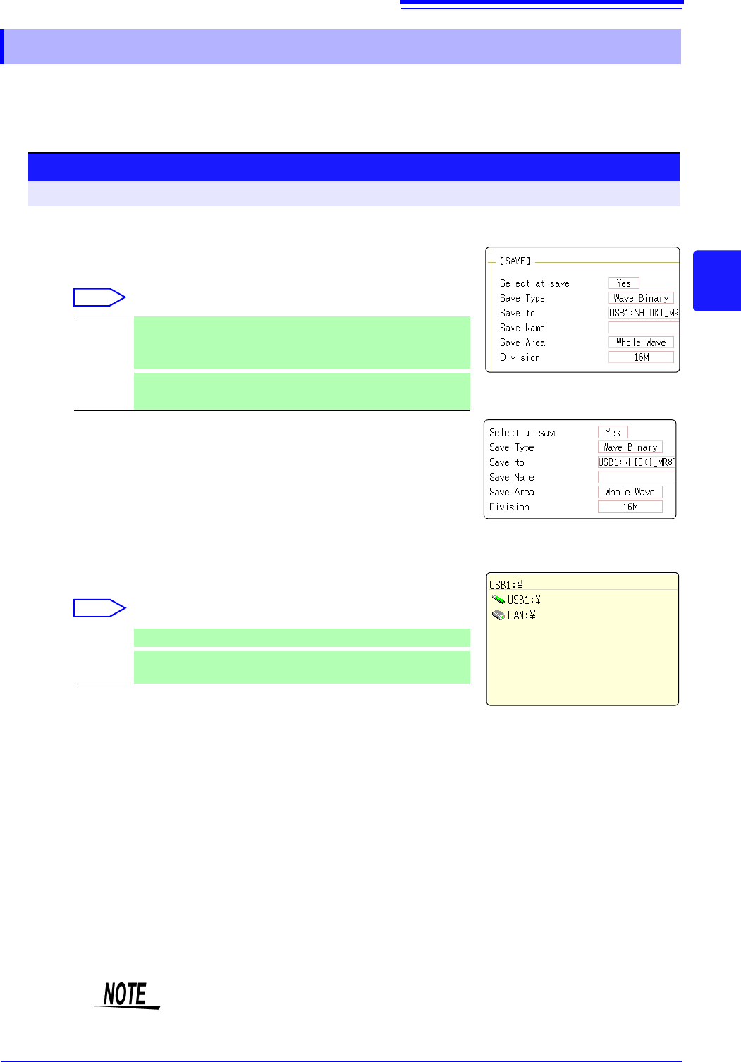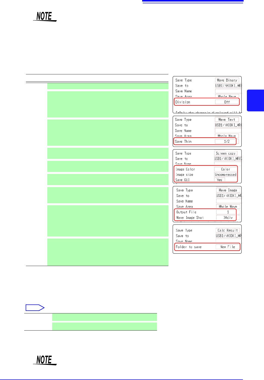 ditions beforehand. The type of data to be saved are as following. (Settings data, waveform data,