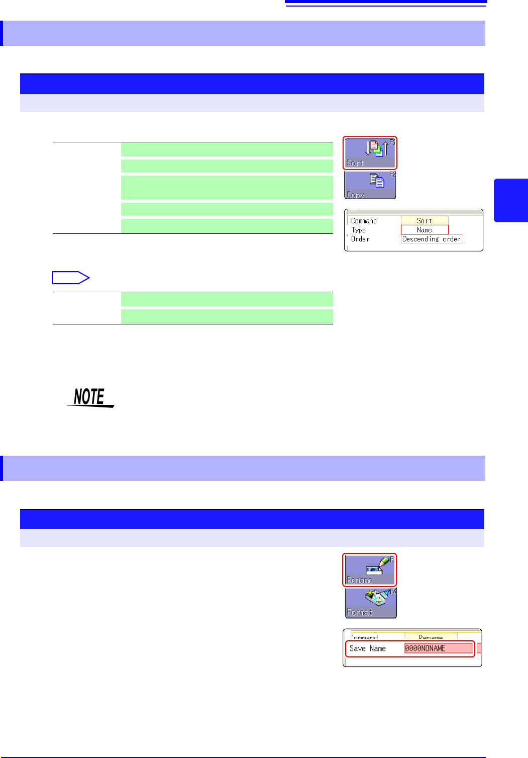 Type Sorts files by type (file format) of data (settings, MEM