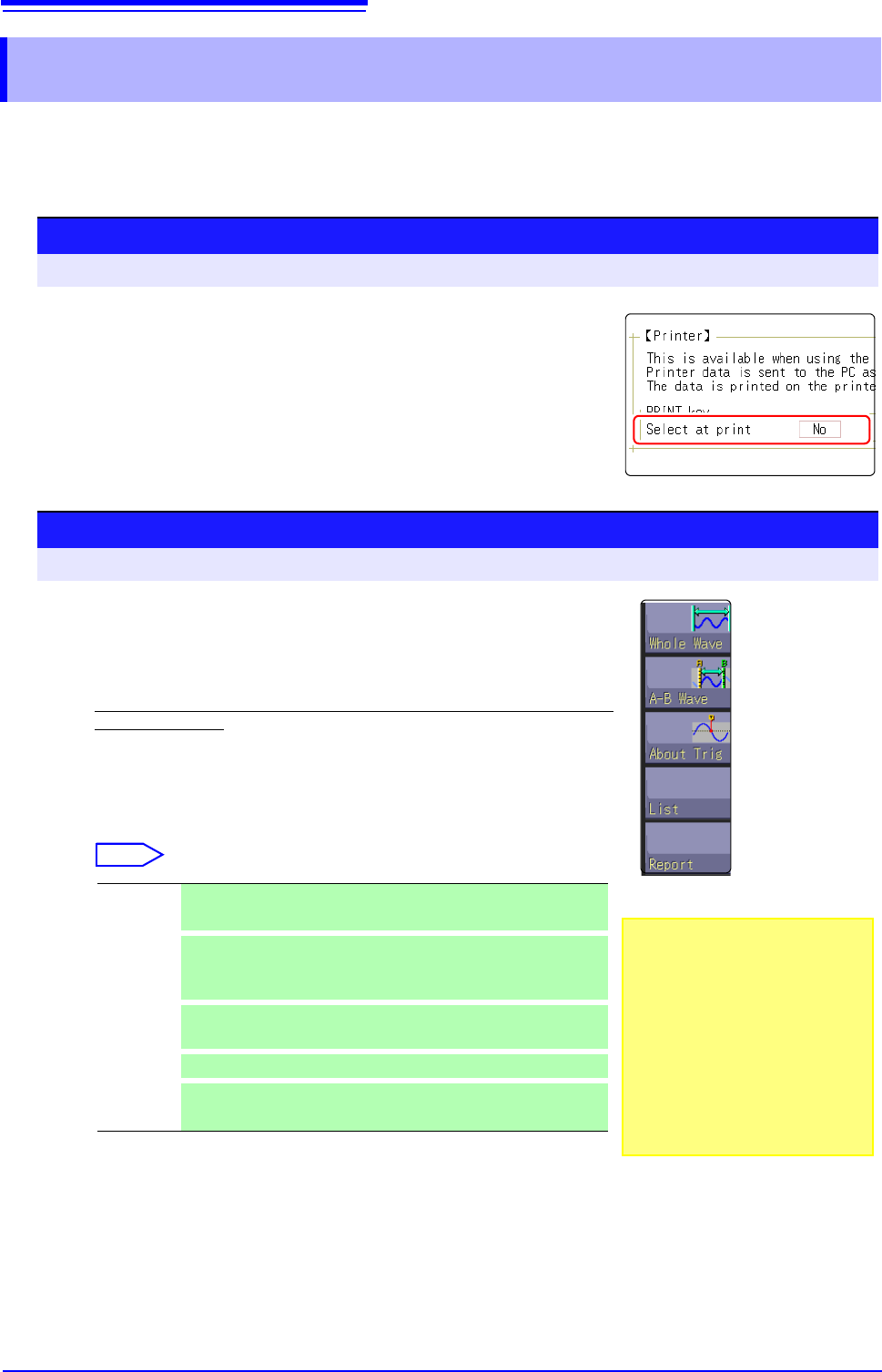When performing waveform evaluation, the evaluation area will be printed at the same time.