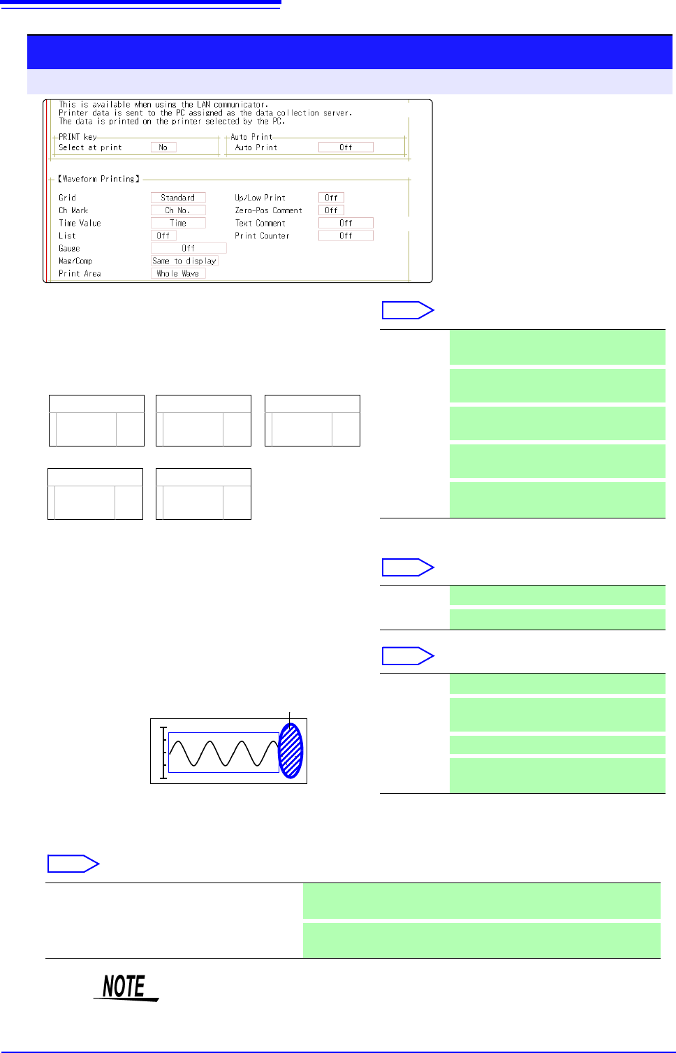 5.4 Set the print contents 115 6 Chapter 5 Printing 5 7 Set the upper and lower limit value Move the cursor to the [Up/Low Print] item. Select 8 Set the zero-position comment Move the cursor to the [Zero-Pos Comment] ite…