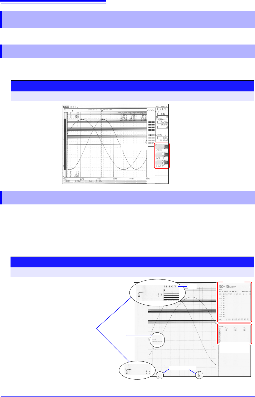 The A/B cursor pair shown on the Waveform screen is also printed.