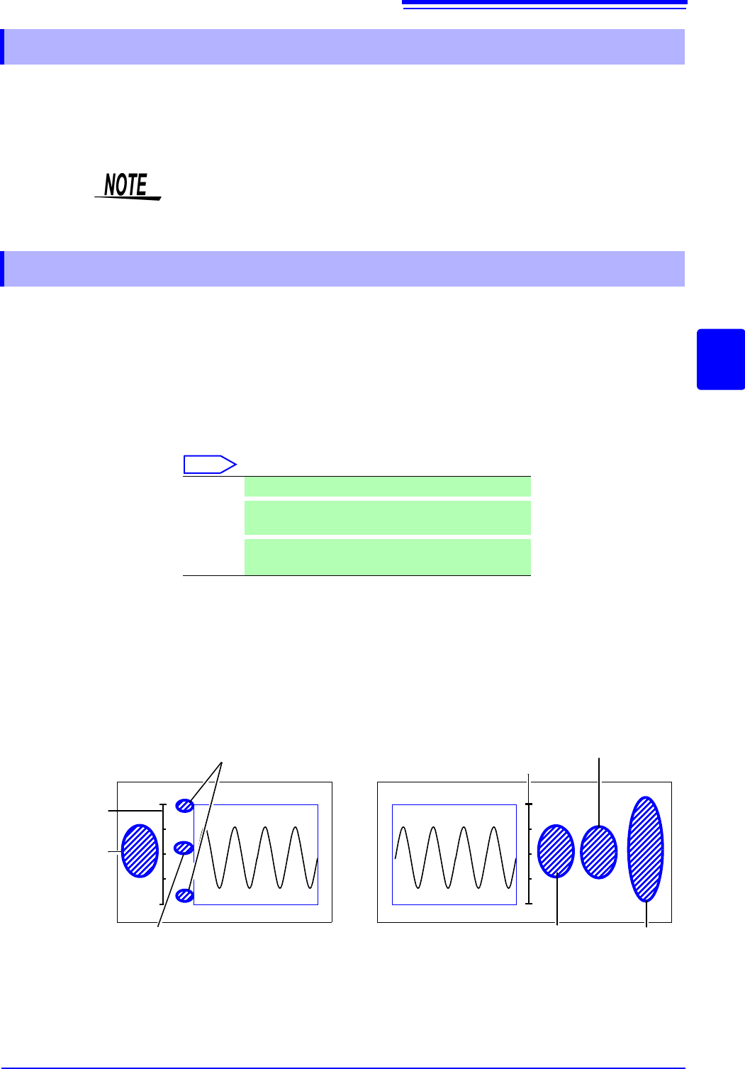 The waveform range as displayed on the Waveform screen, upper and lower limit values, and chan-