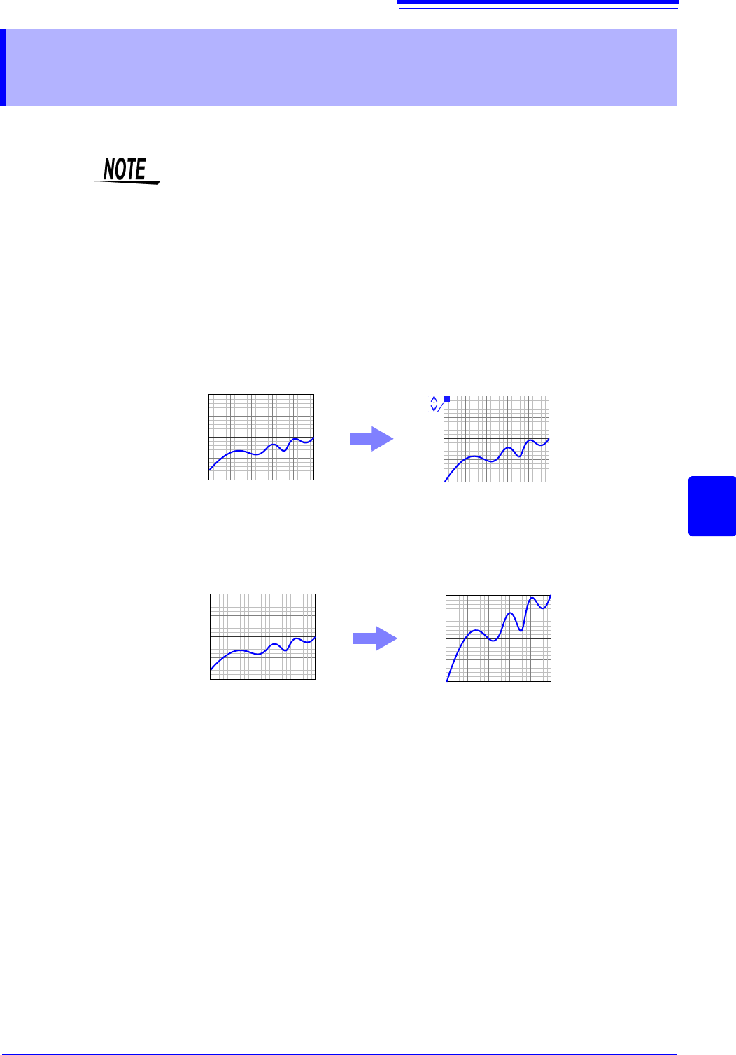 • The vertical axis (voltage axis) range is unaffected by changes to the upper