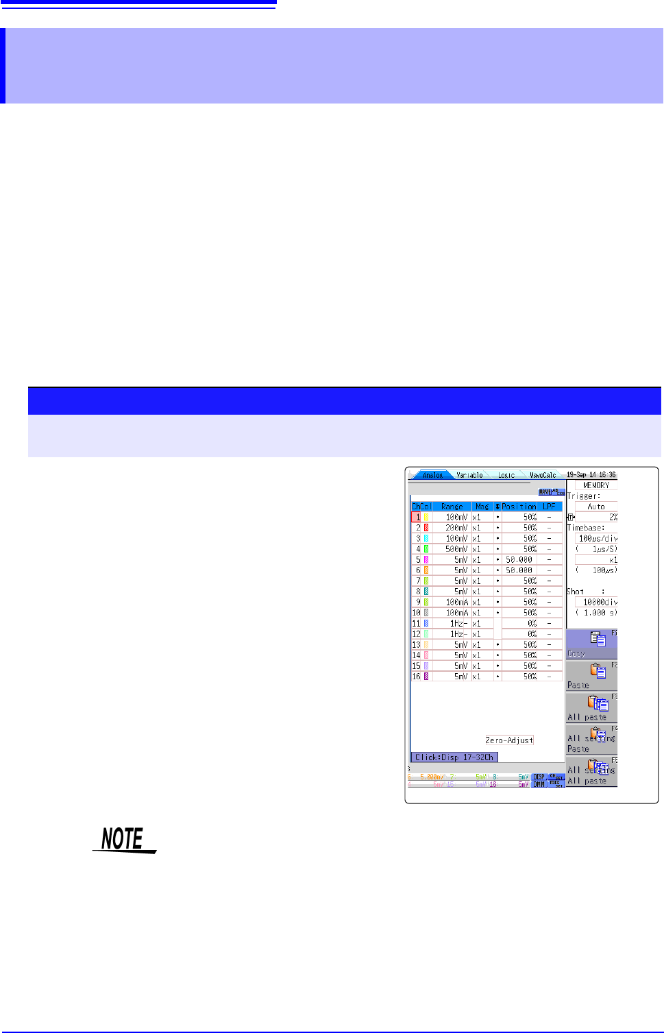 7.8 Copying settings to other channel s (calculation No.) (Copy function) 160 At the following screens, settings can be copied to other ch annels and calculation No. (When the FFT function is used). • Channel settings wi…