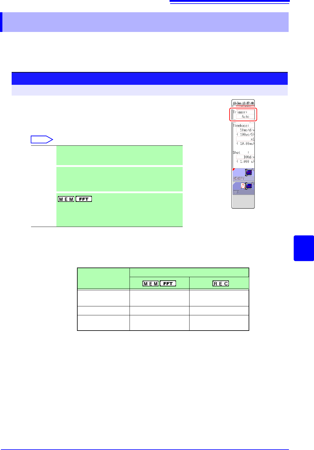 trigger standby condition (Auto Save, waveform display processing, numerical