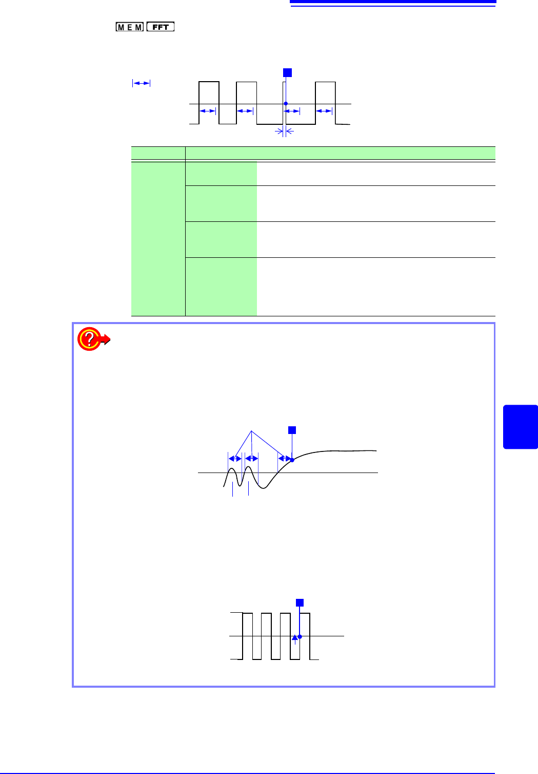 8.3 Triggering by Analog Signals 196 Description About period range settin gs The period ra nge settings for period triggering depend on the sampling per iod (sampling rate). (Cha nging the timebase also chan ges the per…