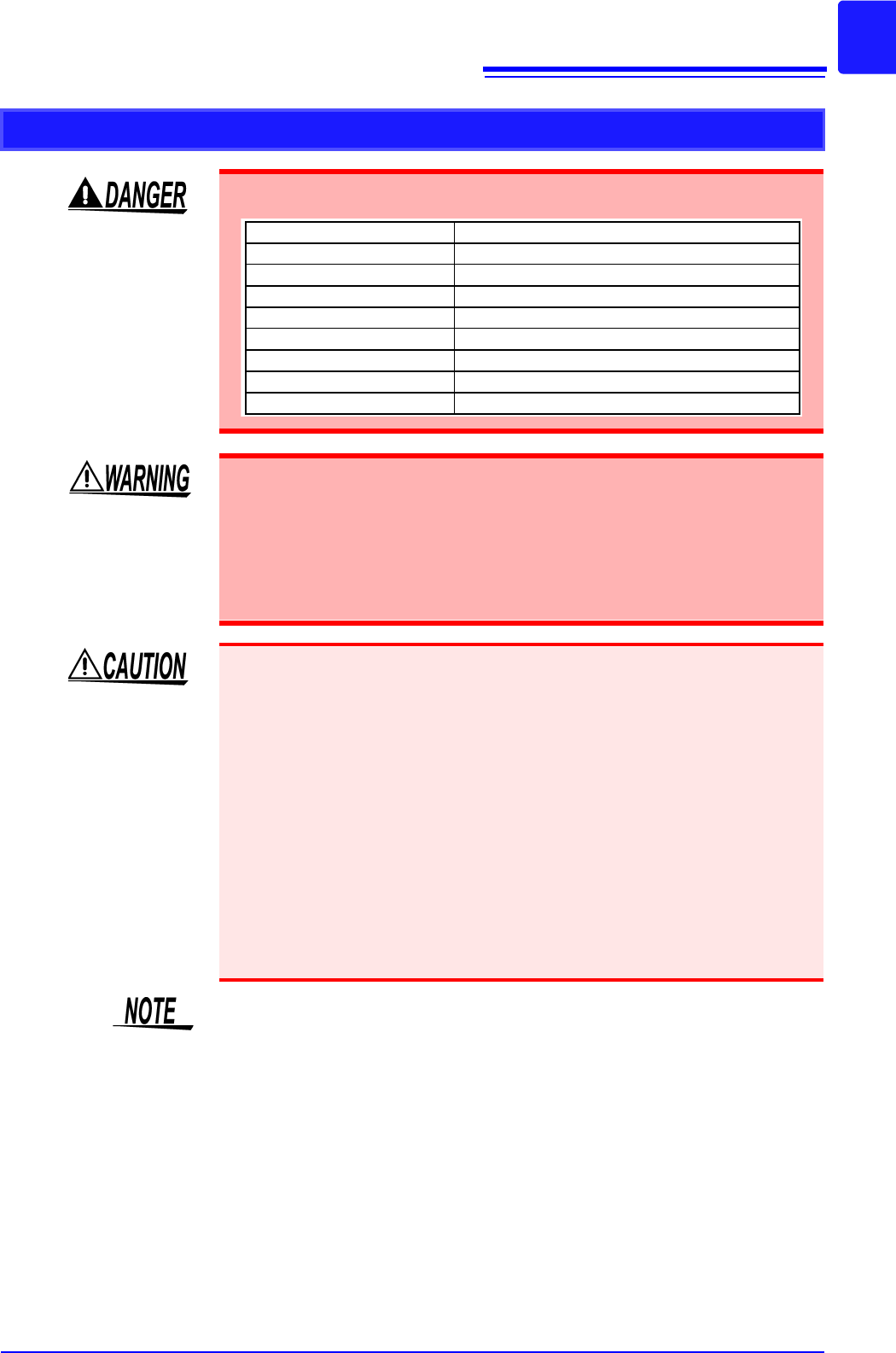 • To avoid electric shock and short-circuit accidents, use only the specified test