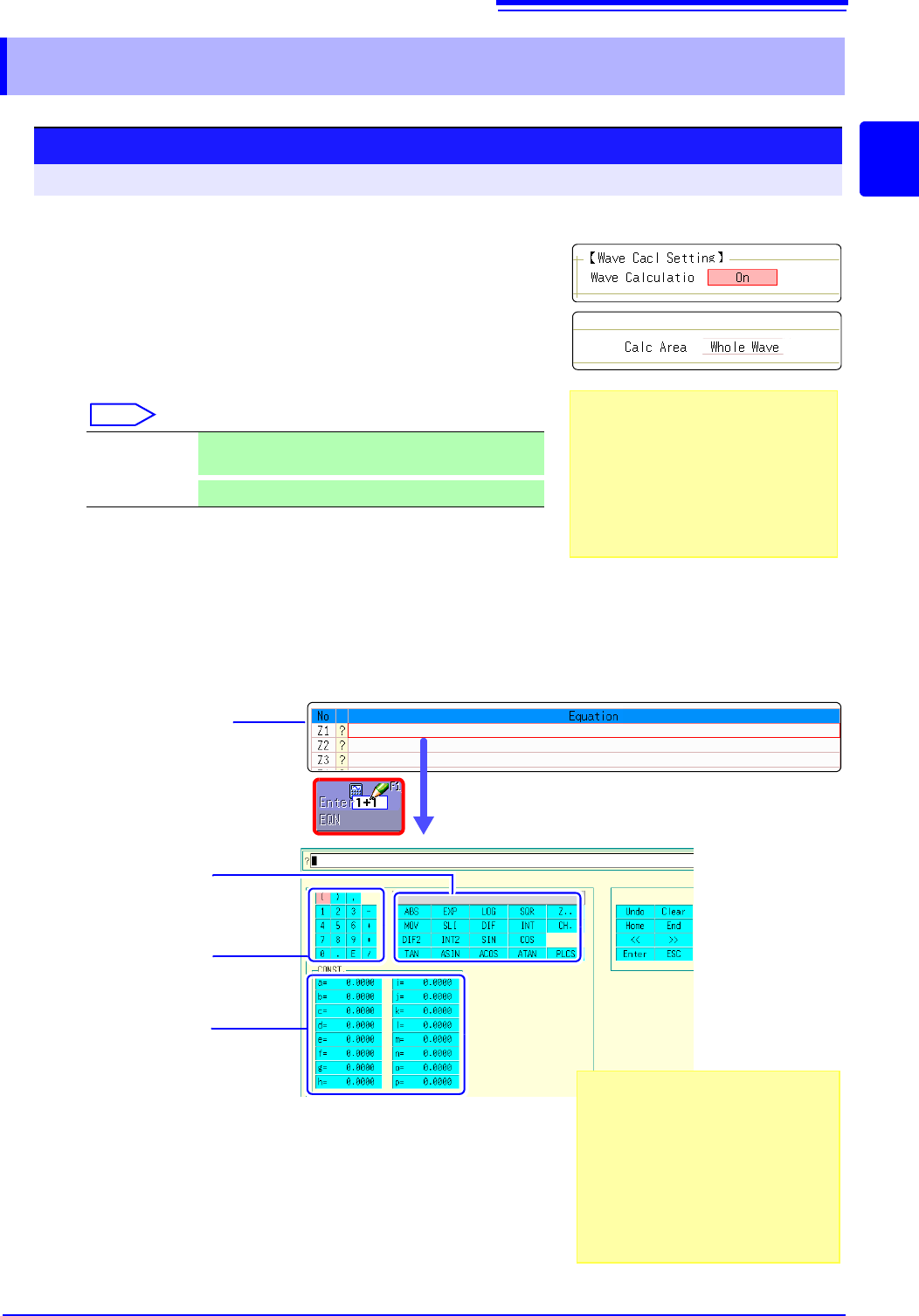 Make Calculation Settings Make calculation settings on the Waveform Calculation