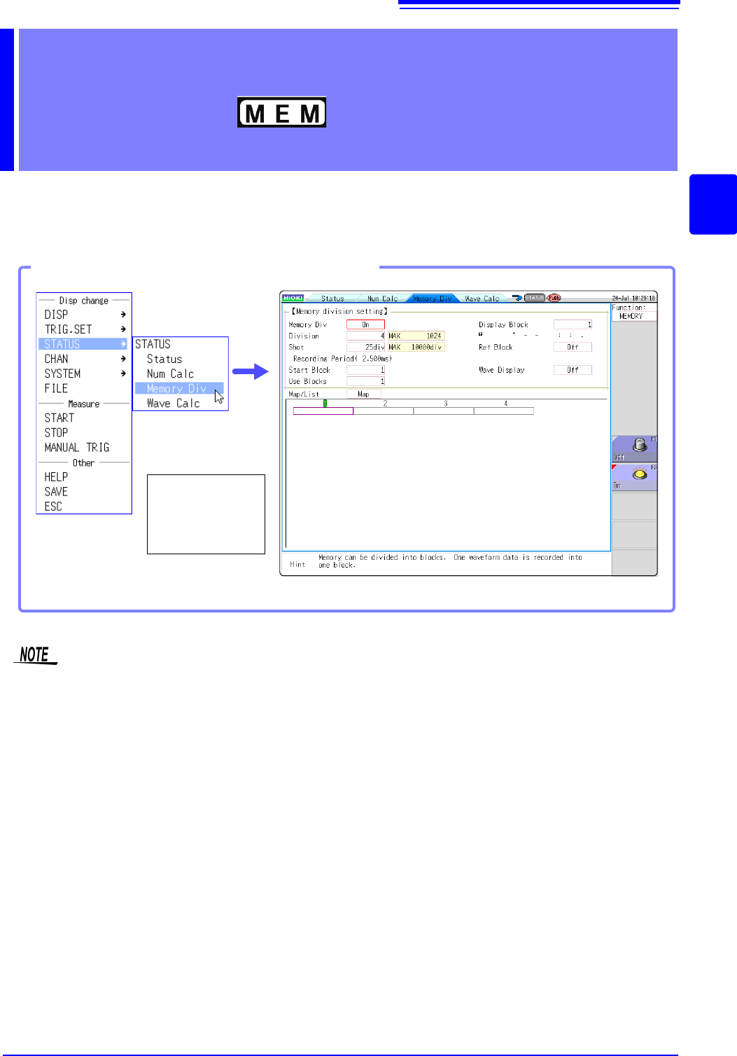 Memory division settings are made on the Status screen - [Memory Div] sheet.