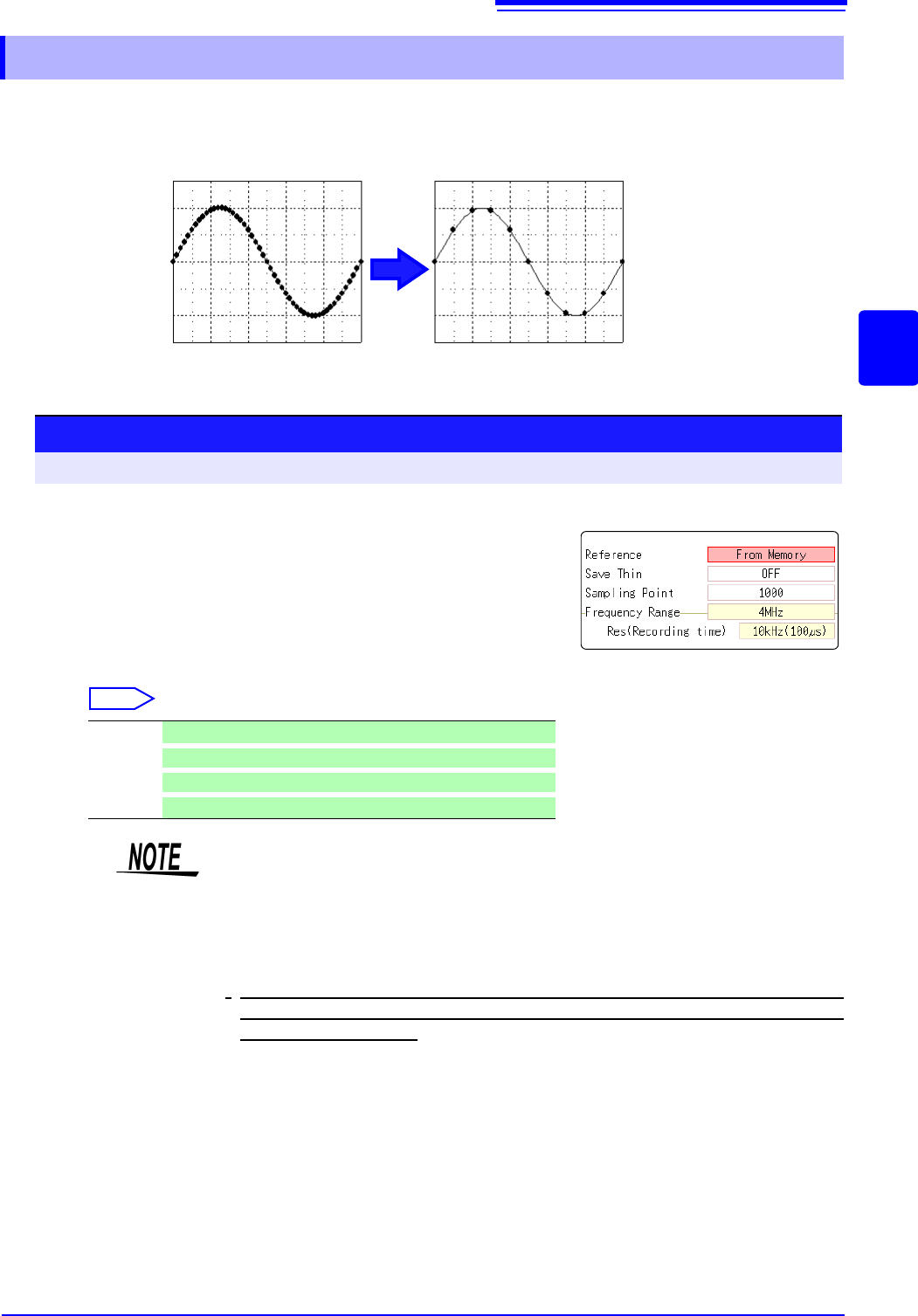 12.3 Setting FFT Analysis Conditio ns 253 11 Chapter 12 FFT Function 12 When performing FFT analysis of data measur ed using the memory function, the mea surement data can be thinned bef ore calculation. If the sampling …