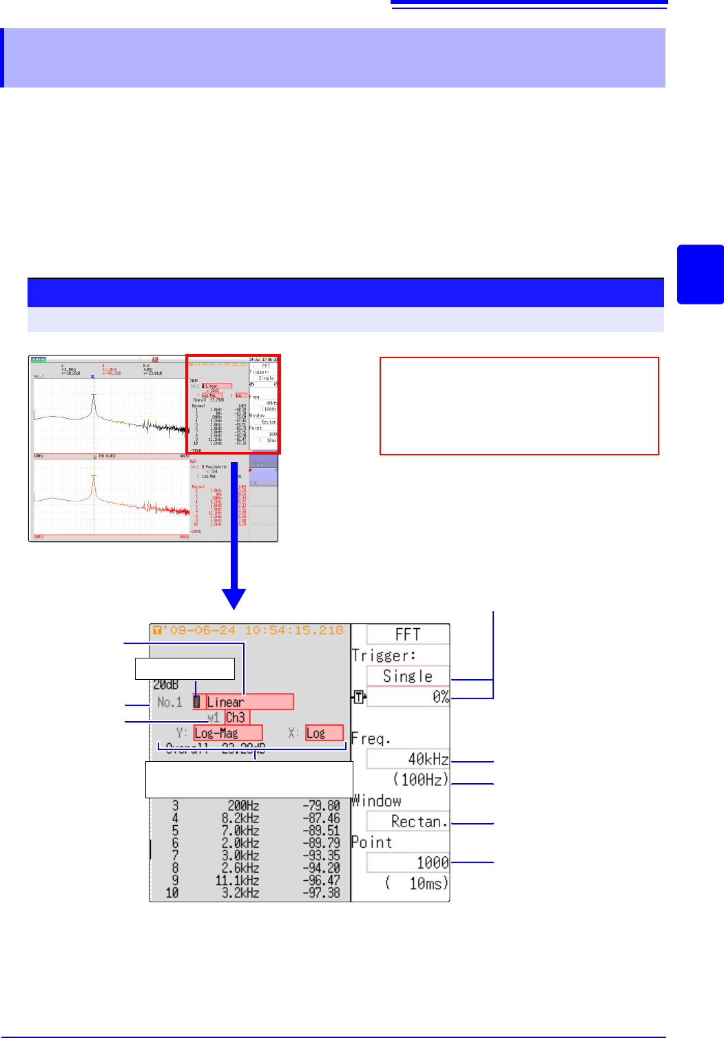 12.3 Setting FFT Analysis Conditio ns 264 The display r ange of the vertic al (y) axis can be set t o automatically suit an alysis results, and can b e freely expanded and compressed. 12.3.10Setting the Display Range of …