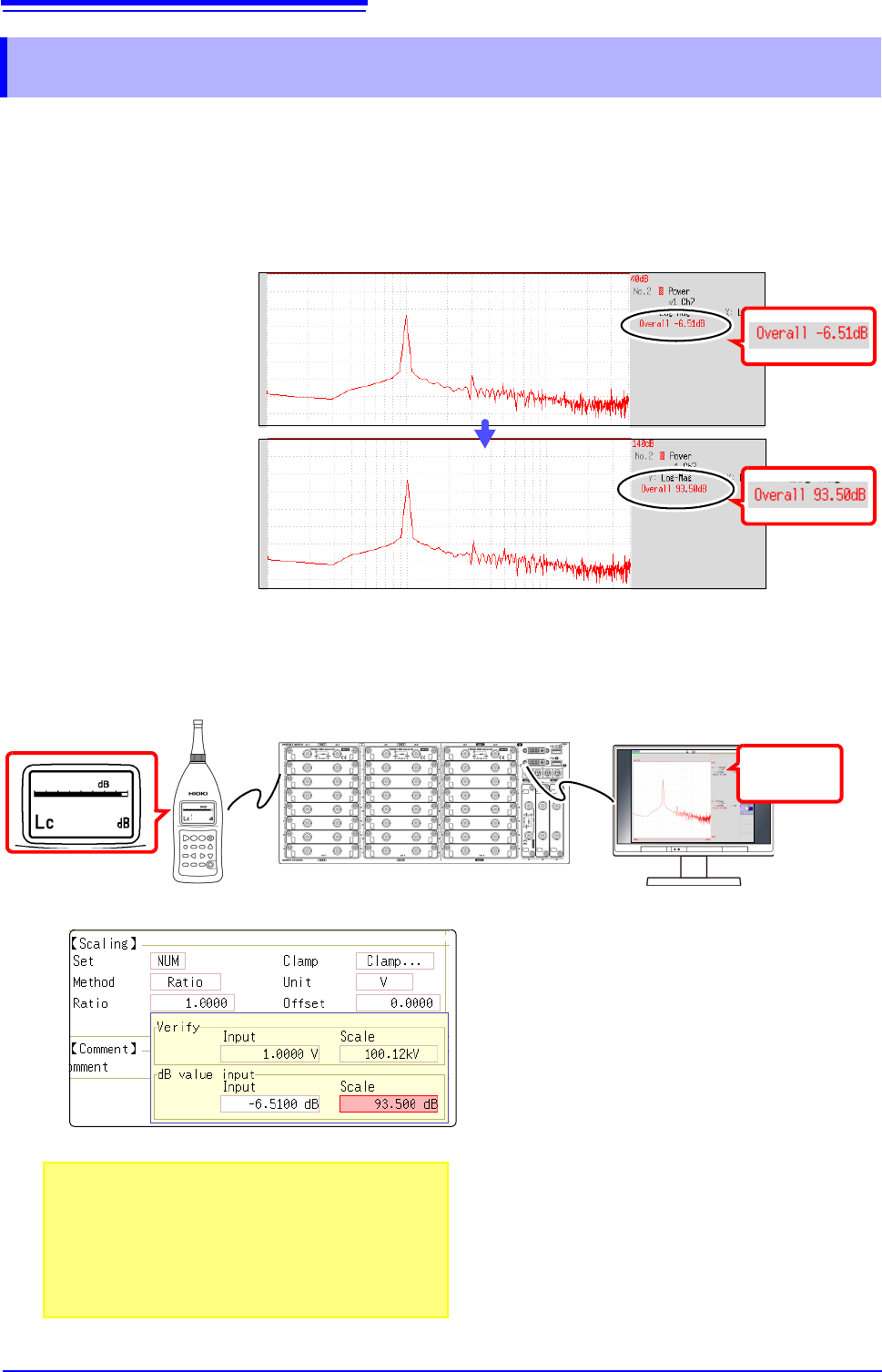 In a case where a sound level meter displays 93.5 dB and the overall value displayed on the Wave-