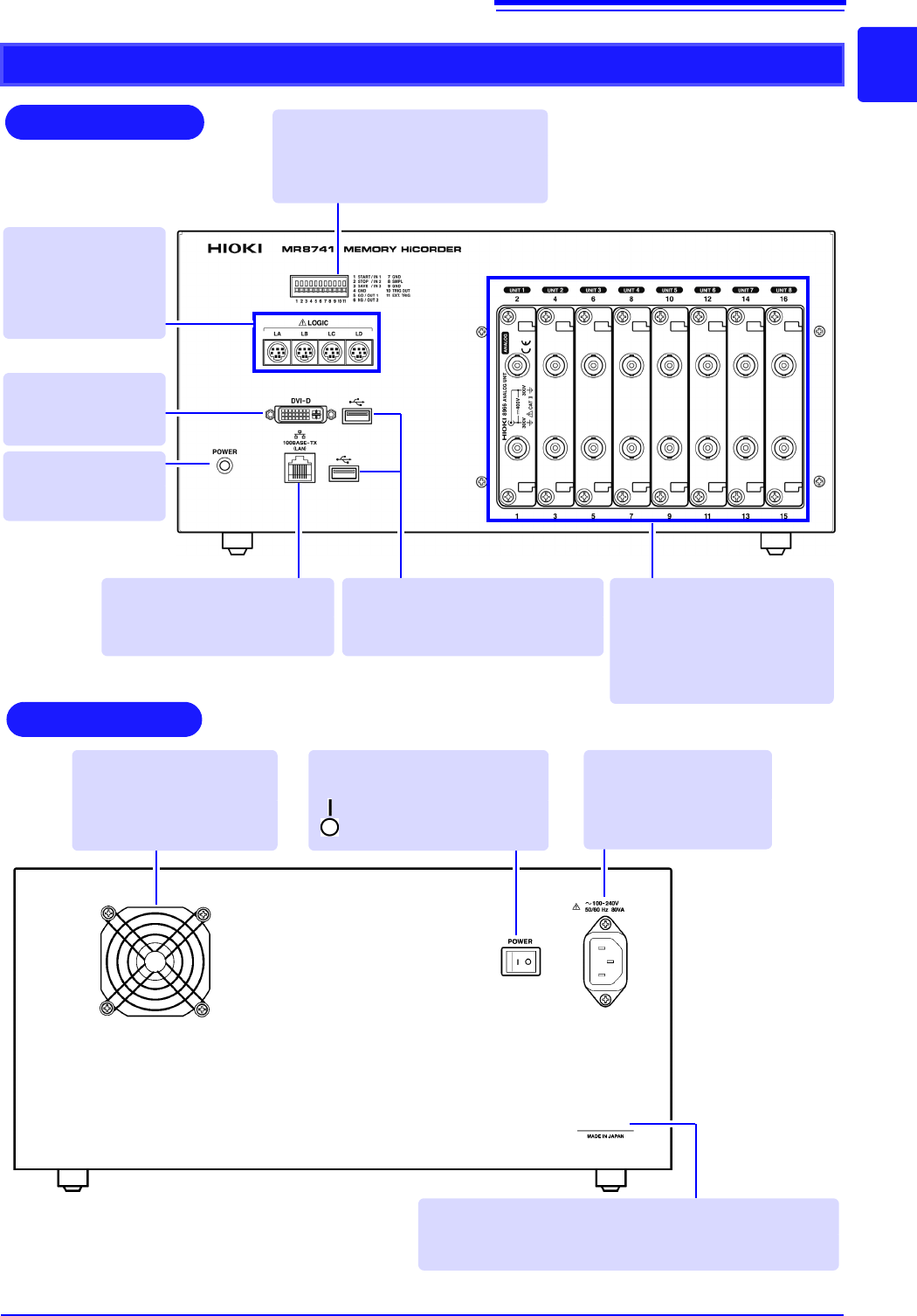 • MR8740 displays the waveforms of the block I side (32 analog channels + 8