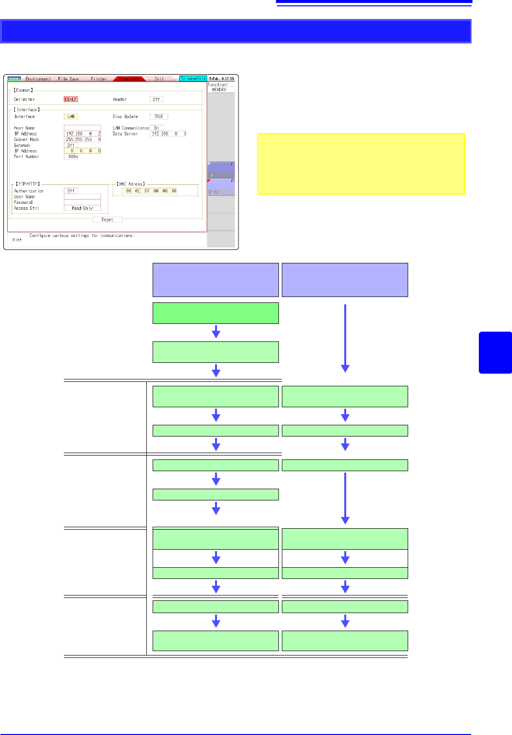 15.1 LAN Settings and Connection (Before Usin g FTP/Internet Browser/Command Communications) 316 MR8740/MR8741 is not equipped with a DHCP fu nction. There are tw o methods to install the instrument (MR8740/ MR8741) to a…
