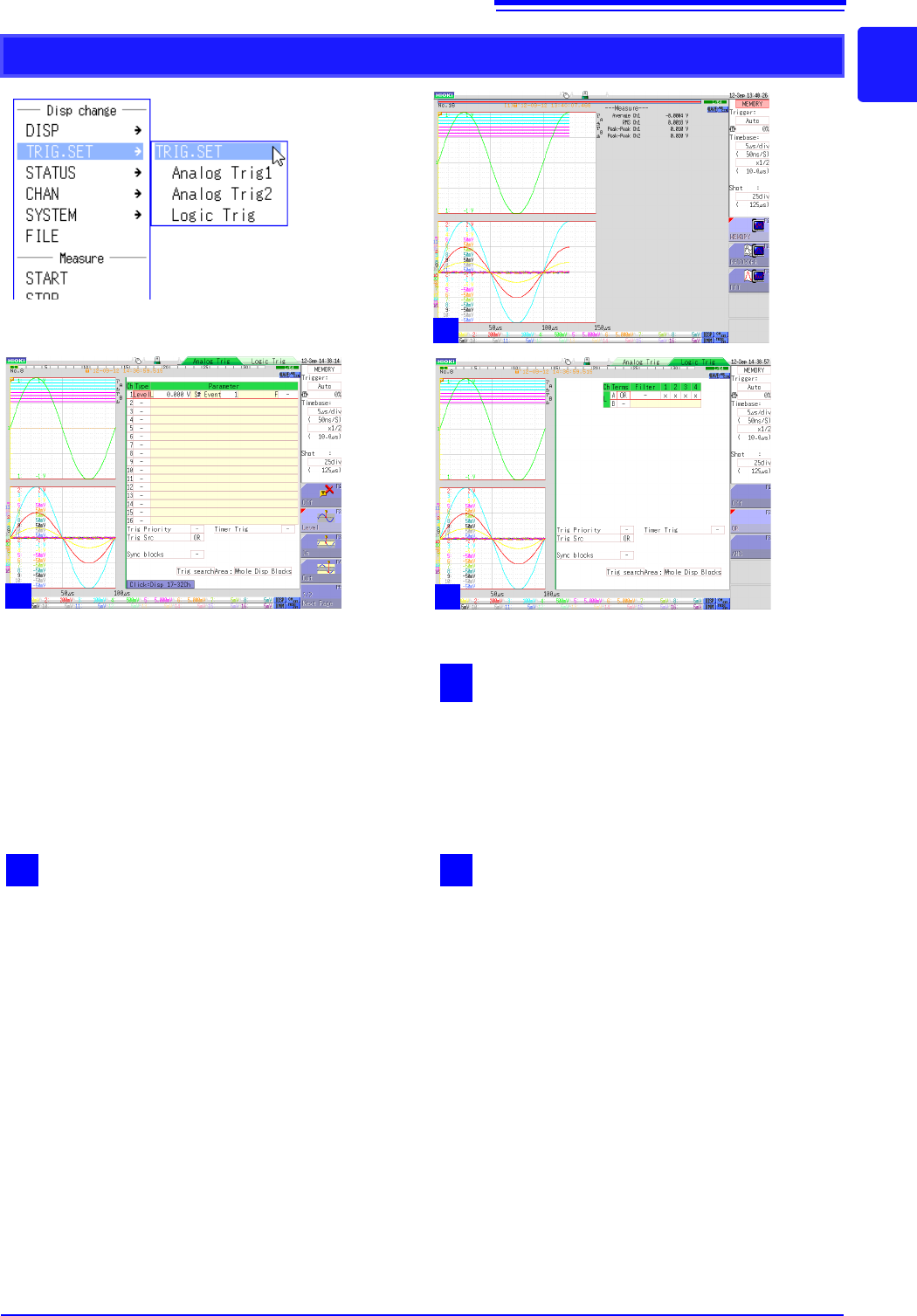 [TRIG.SET] switches between screens 1 to 3.