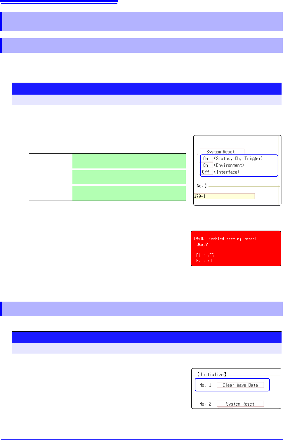 18.2 Initializing the Instrument 374 Select groups of settings currently in force on th e inst rument, and initialize the sett ings. Initialization returns the instrument to the factory default state. By defa ult, the se…