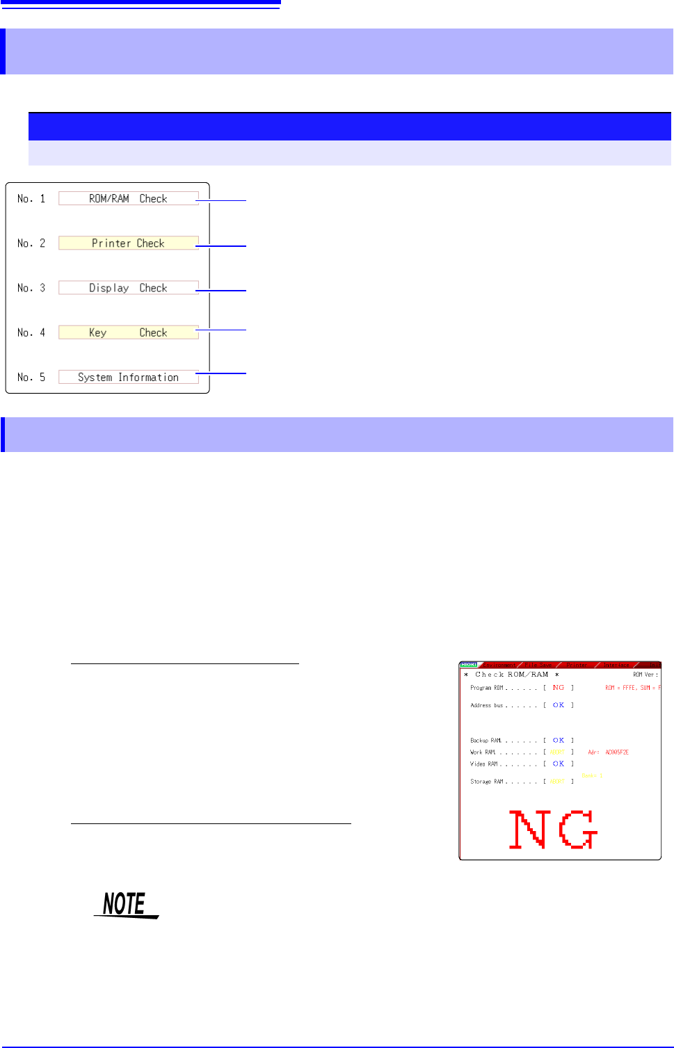 • Performing a ROM/RAM check will cause measurement data to be erased.