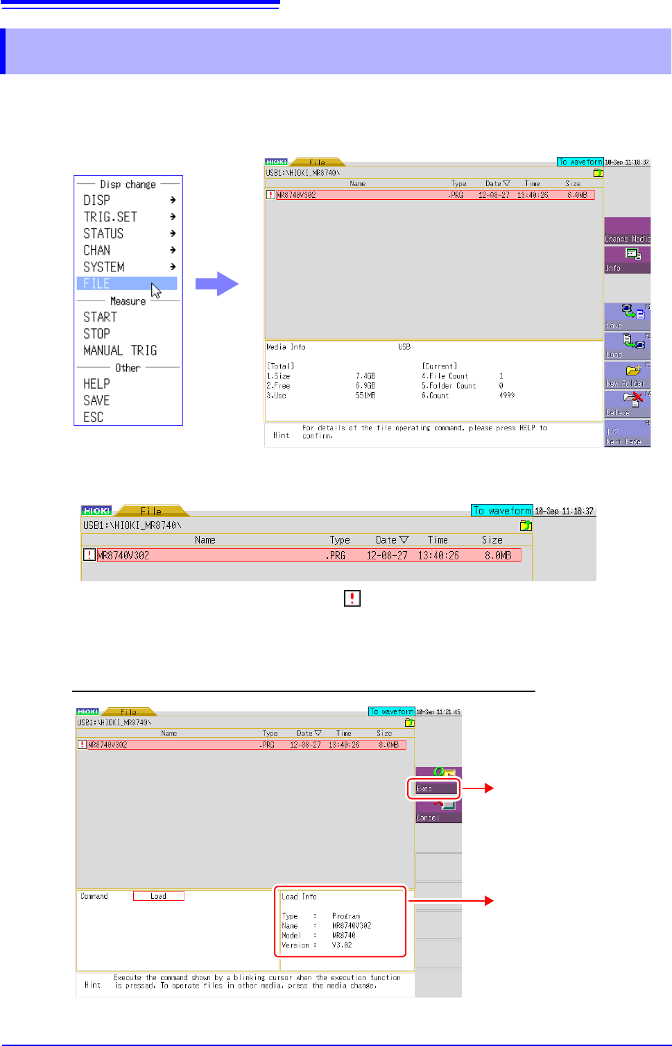 Right-click to display the list menu, and then click [FILE] to open the File screen.