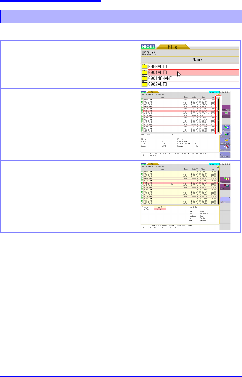 1.5 Basic Operations 34 You can change the displayed folder, load files, an d perform other file operations on the File screen. 1.5.7 File Operations Moving to a folder To move to a folder, double-c lick the folder to wh…